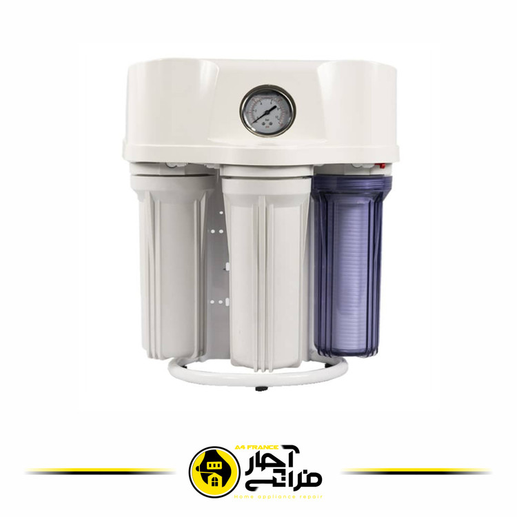 تصفیه آب ۶ مرحلهای، دستگاه شاسی فلزی، water purifier، فیلتر آب خانگی، هوزینگ تصفیه، فیلتر کربنی، فیلتر الیافی، فشارسنج تصفیه آب