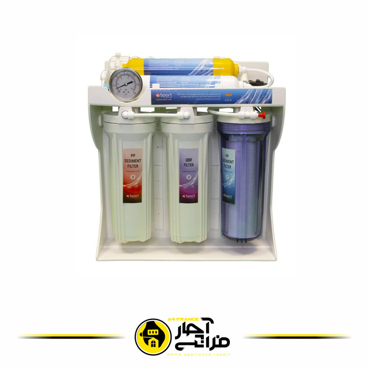 تصفیه آب شاسی پلاستیک، دستگاه تصفیه ۶ مرحلهای، water purifier، فیلتر ممبران، هوزینگ شفاف، فیلتر UDF، دستگاه تصفیه خانگی