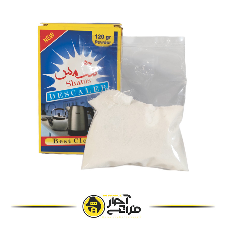 سطوح داخلی حذف میکند و باعث افزایش بازدهی گرمایش و جلوگیری از خرابی المنت میشود. پودر شمس مناسب تمام برندهای خانگی است و کاربردی آسان با نتیجهٔ سریع دارد.